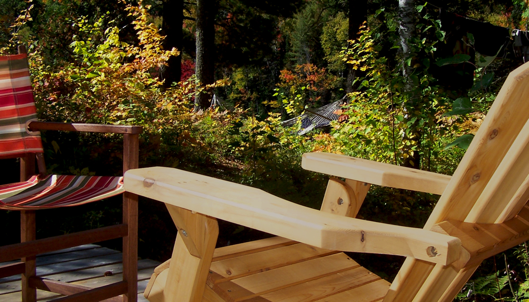 Experience wilderness living in comfort in this spacious 1500 square foot log cabin spread over two floors. Helmed from the surrounding forest and lovingly constructed with wonderful attention to detail over a five year period, this authentic masterpiece easily sleeps 6 adults. It comes equipped with wood and propane stoves, running water, and an eco-toilet. Whether curled up on the sofa in front of the woodstove, by the window overlooking the lake, or in a rocking chair on the veranda, rest and truly Be on vacation. For those more activity inclined, swimming, fishing, canoeing, or hiking are right at your doorstep.